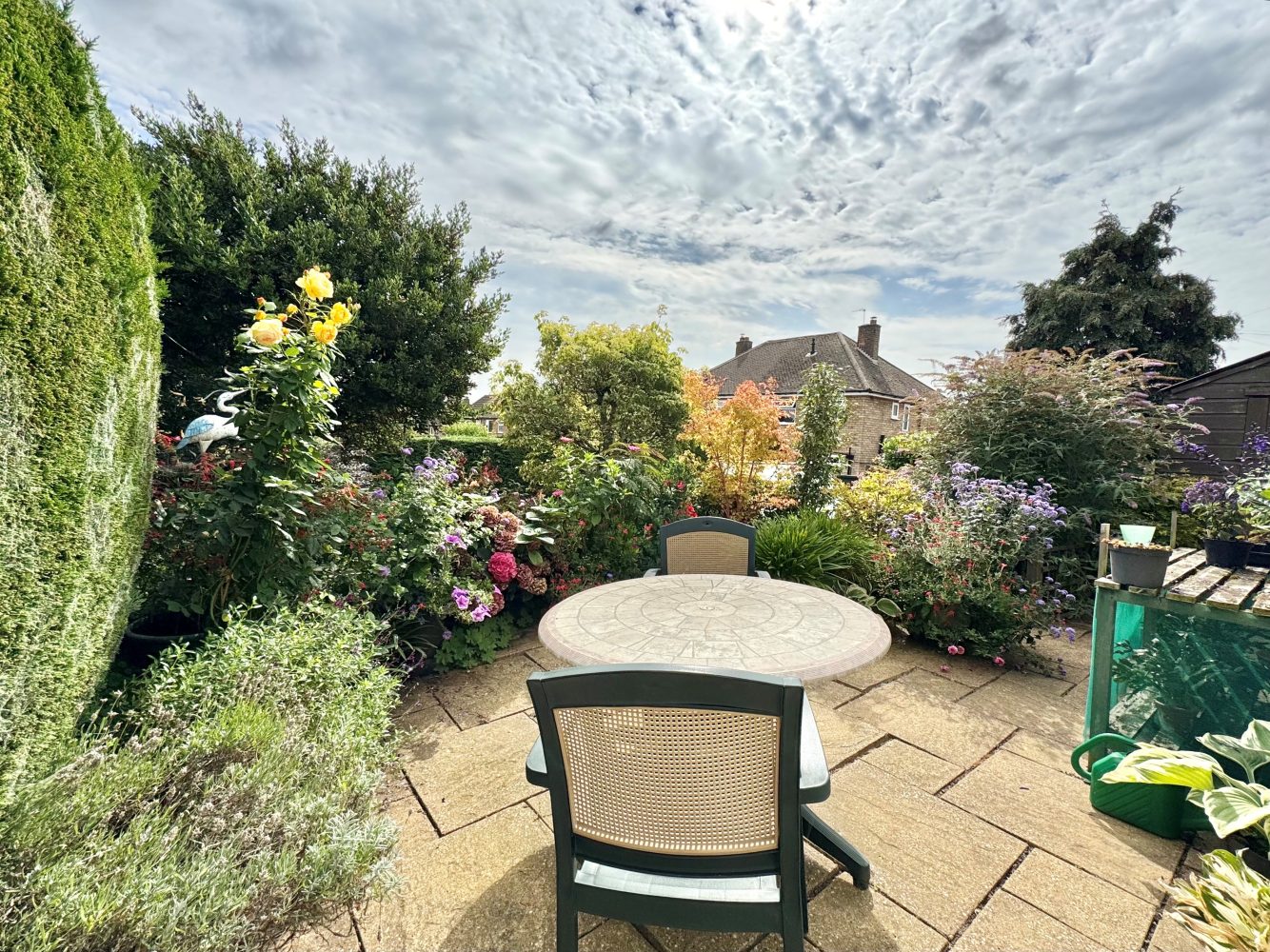 A well tended and established garden which has a variety of well stocked flowers, shrubs, hedging and shingled boarders. There is space for a green house, a wooden shed and steps leading up to to two patio areas with courtesy lighting and an outside tap, all mainly enclosed by panelled fencing.