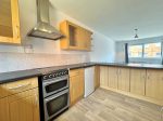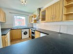A generous sized and dual aspect room which has a window to front and a window to rear. There is a range of eye and base level units with a breakfast bar, roll top work surfaces and tiled splash backs, electric cooker point with a stainless steel extractor fan hood, one and a half sink drainer unit, plumbing for a washing machine, space for a fridge freezer and there is and electric coal effect fire with a mantel and hearth and an intercom entry phone.