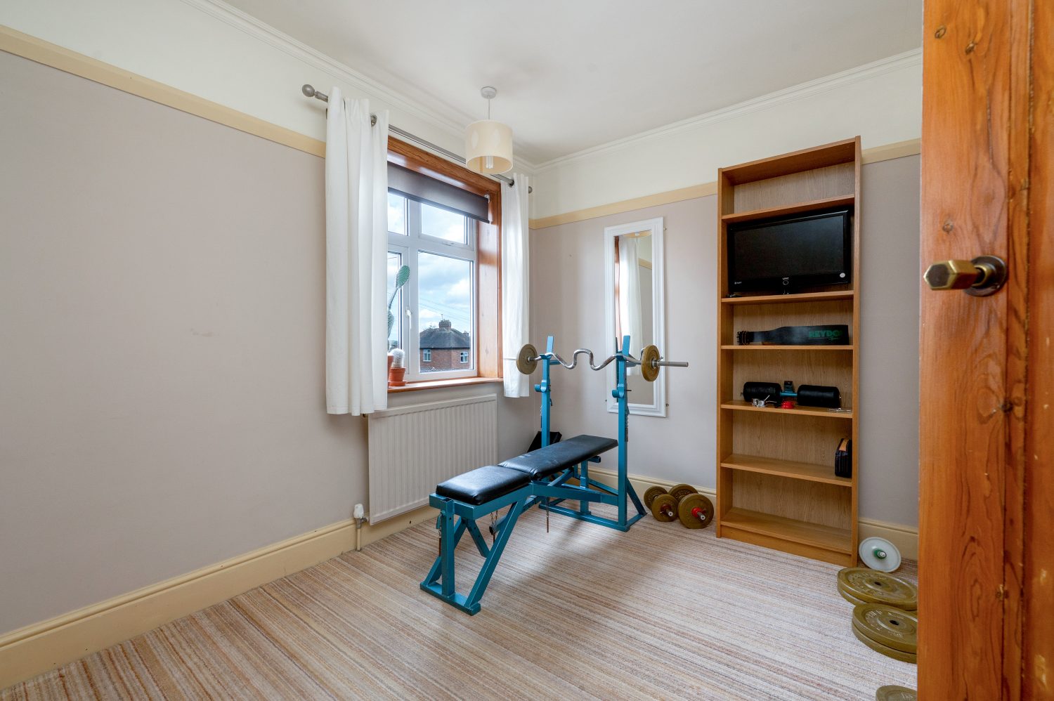 A double bedroom with a window to side and picture rails.