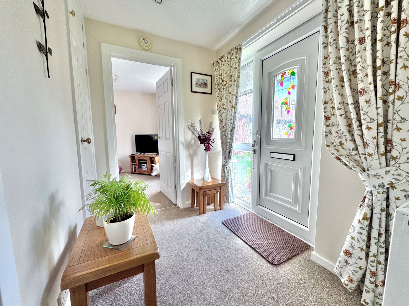 Entrance via a part glazed front door with a frosted side window, there is an emergency alarm, built in cloaks cupboard with a cupboard above and a built-in airing cupboard which houses the hot water cylinder and there is a cupboard above, loft hatch providing access to an insulated loft area and doors to: