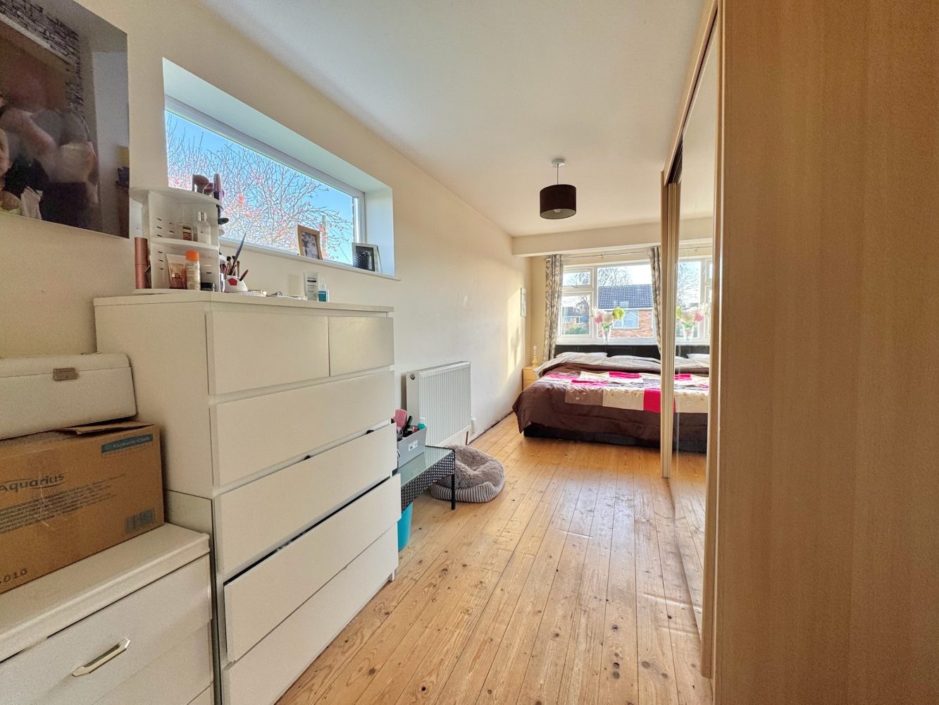 A dual aspect room with a window to front, window to rear, wooden floor and a door to: