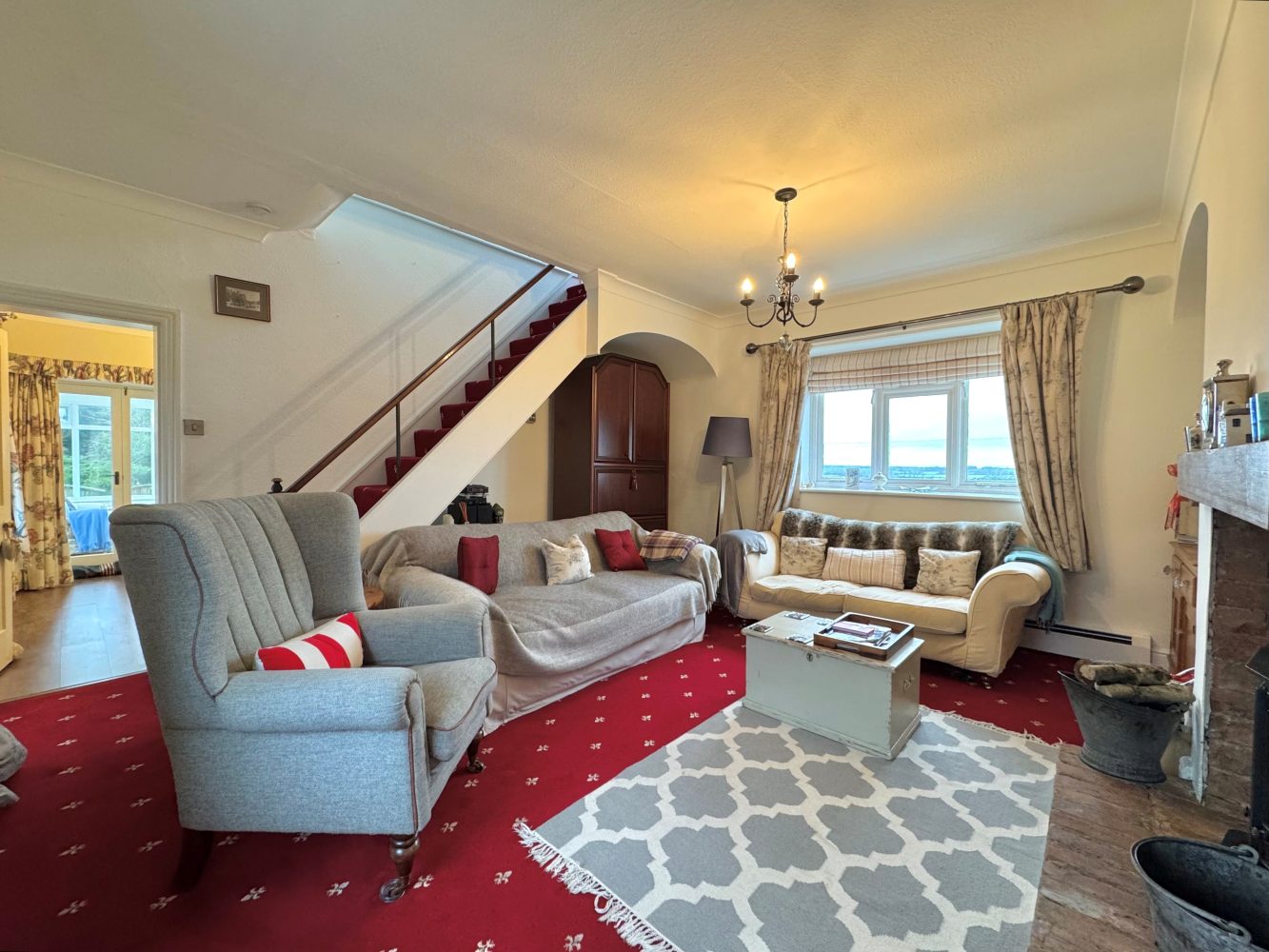 A lovely dual aspect room with a window to the front, a window to the rear and staircase leading up to the first floor landing. A central focus is the multi-fuel log burner with a brick built surround. A fitted cloak cupboard and storage. Access to the kitchen breakfast room is through a part glazed door at one side and with a door on the other side leading to: