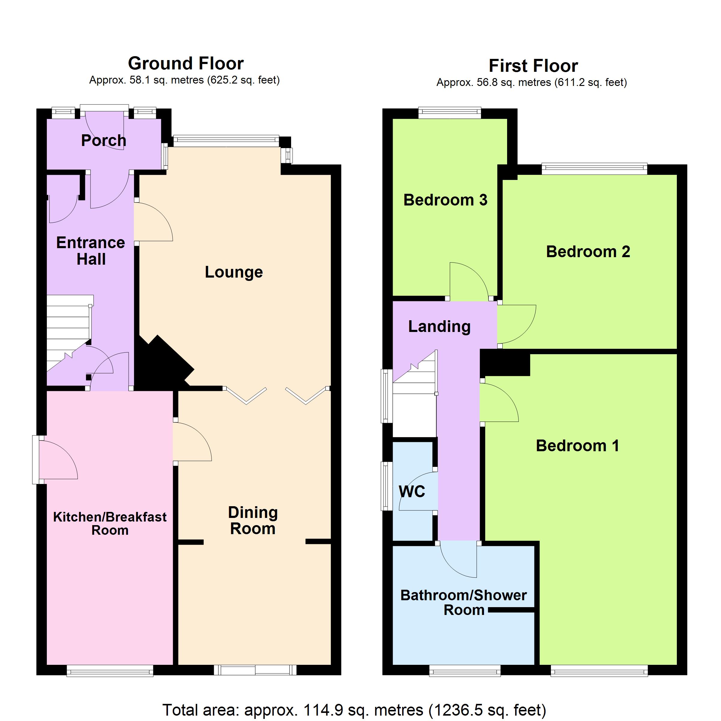 - Three Bedrooms & Bath/Shower Room & Sep WC