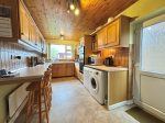 Window to rear, part glazed door to side and a range of eye and base level units with a breakfast bar, roll top work surfaces and tiled splash backs. There is a one and a half sink drainer unit, integrated double oven, grill and a gas hob with a pull down extractor fan hood, plumbing for a washing machine and a dish washer, space for a fridge freezer and a door to the entrance hall.