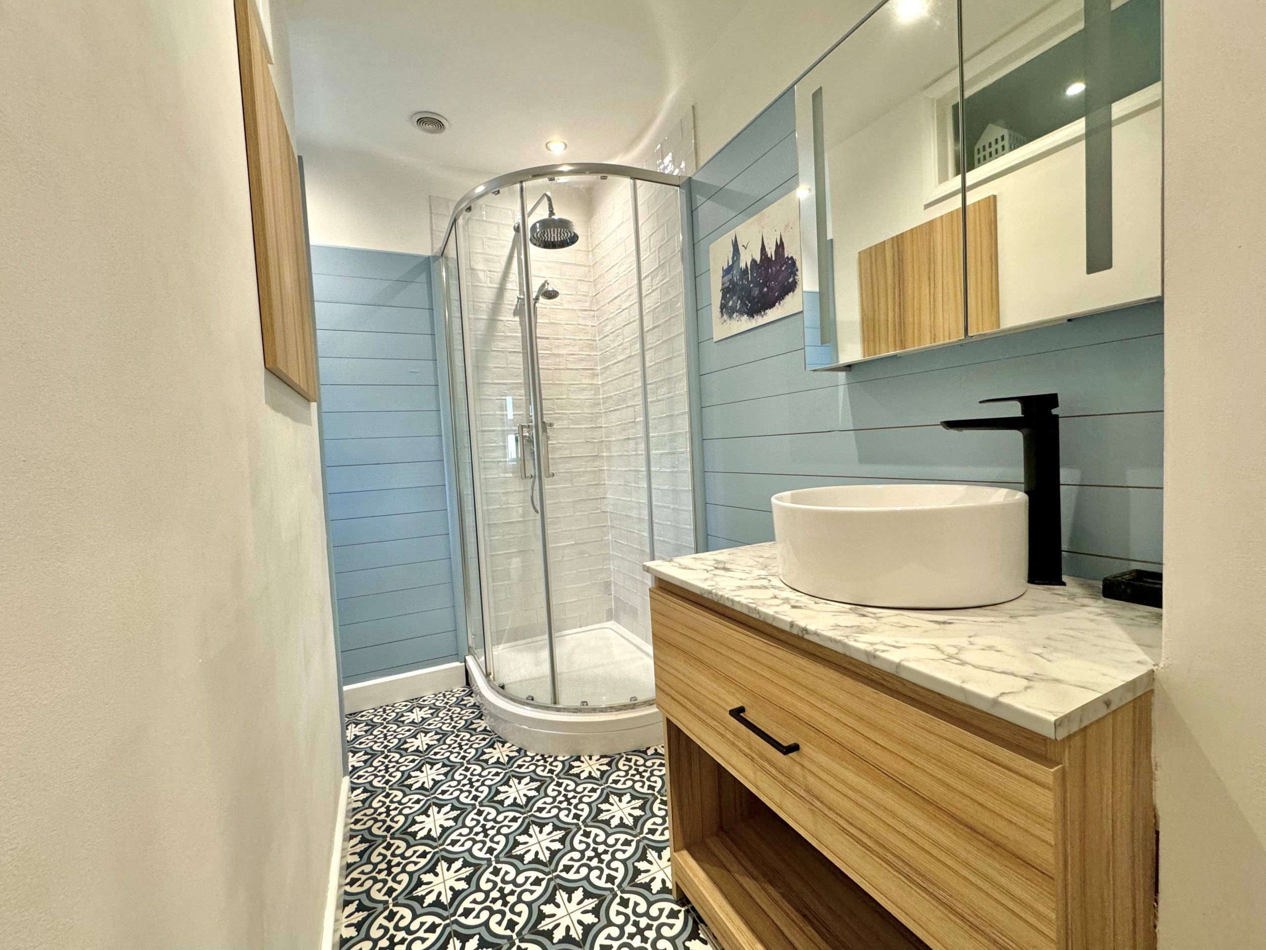 Re-Fitted Shower Room 11'7" x 4'6" narrowing to 2'9" 7'2" into recess