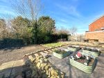 A generous sized and mature garden which is mainly laid to lawn with a variety of established flowers, hedging and trees, there is a paved terrace area which has steps leading down to a patio area benefiting from an outside tap, courtesy lighting and a side gate providing shared access to the front of the property. Towards the bottom of the garden is a vegetable garden with raised beds and a wooden shed, all mainly enclosed by fencing and hedging.