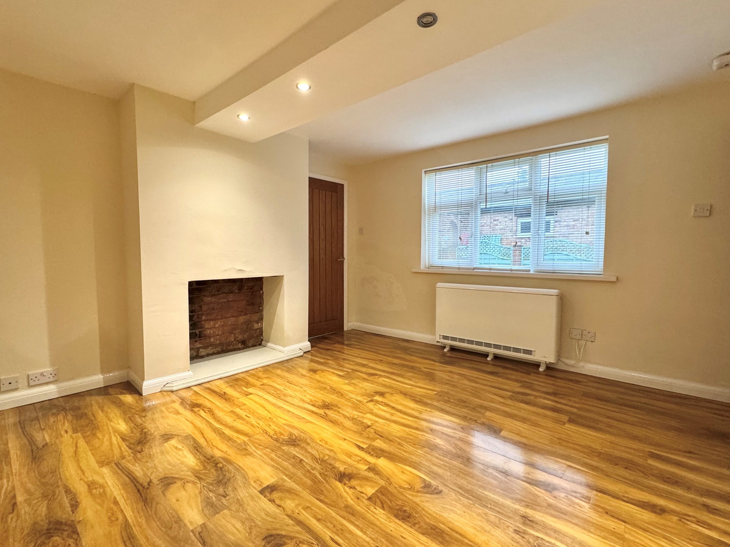 Window to front and there is a an open fire recess (not in use) with a stone hearth.