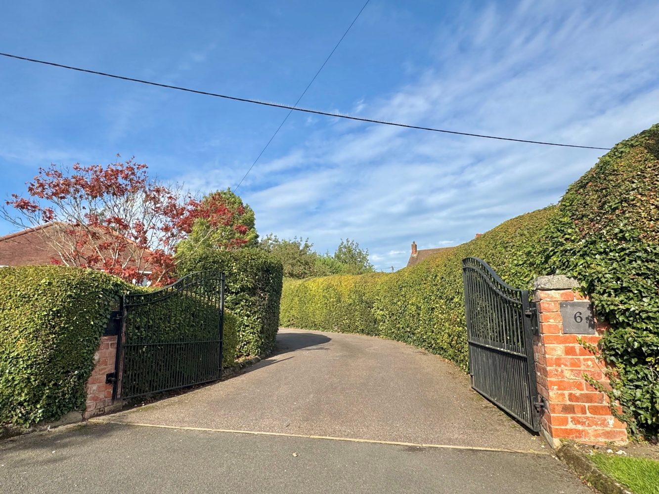 Entrance via both a single and double gated access which leads onto an extensive drive for several cars which leads to the garage the car port, the rear garden and outbuildings, the front garden has a lawn area with a variety of well stocked flowers, shrubs, shingle and hedging.