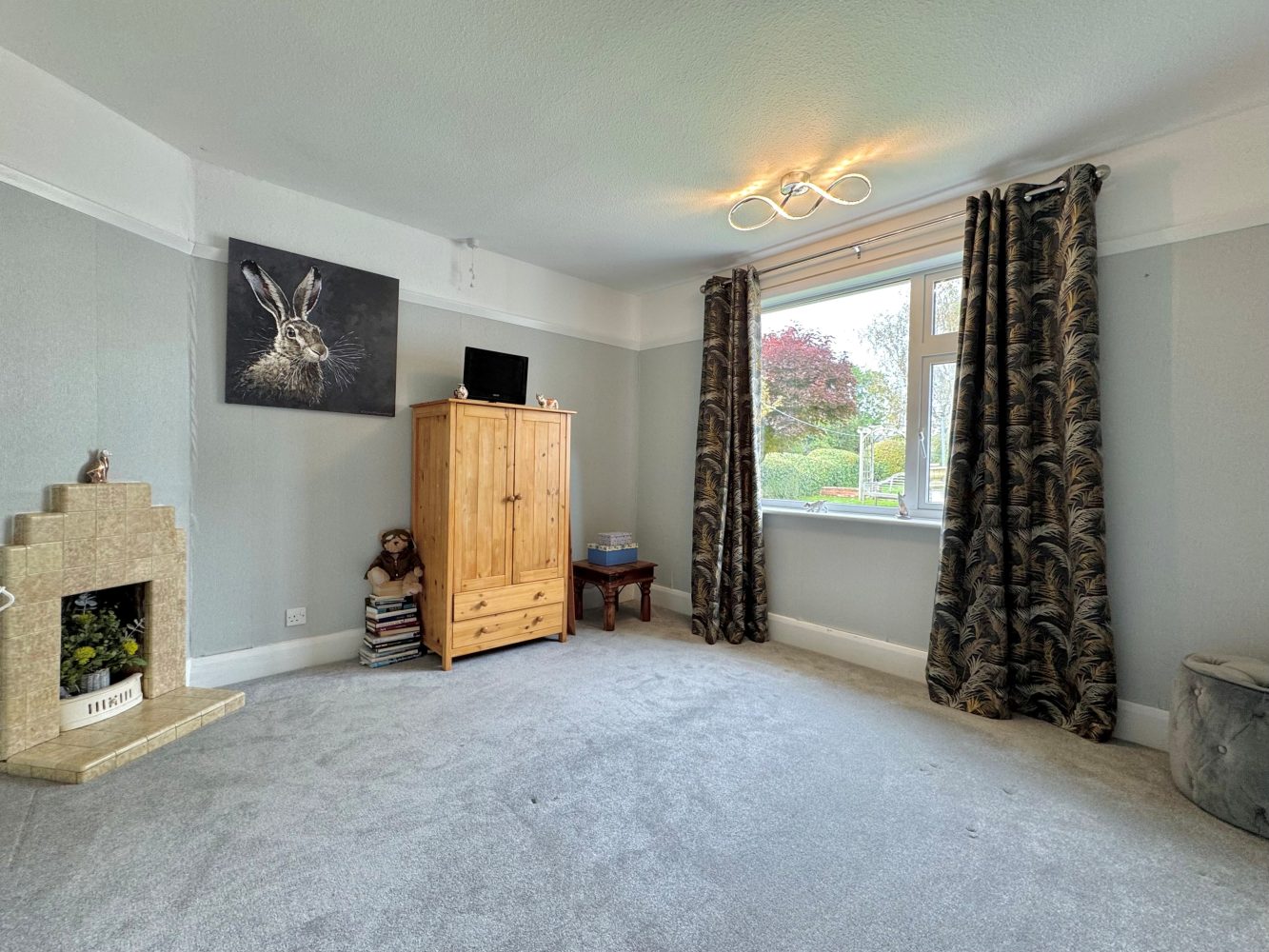 Walk-in bay window to front, picture rails, ceiling rose and a real flame gas coal effect fire with a stone mantel and hearth.