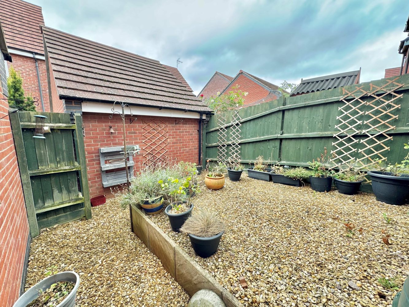 A well enclosed patio garden which is mainly shingled.