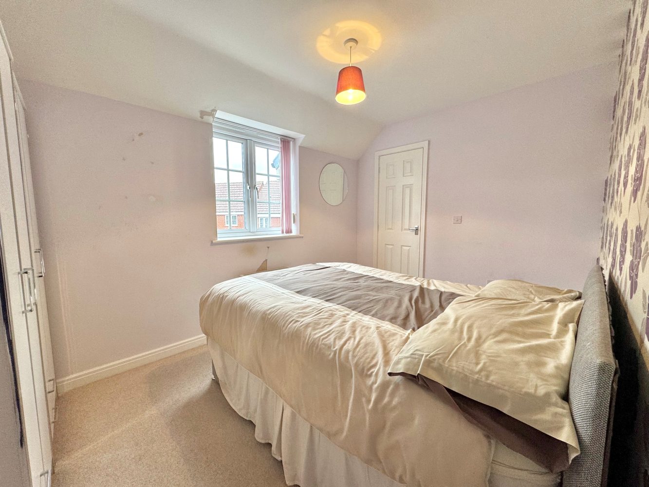 A double bedroom with a window to front, a walk-in cupboard and a loft hatch providing access to the loft area.