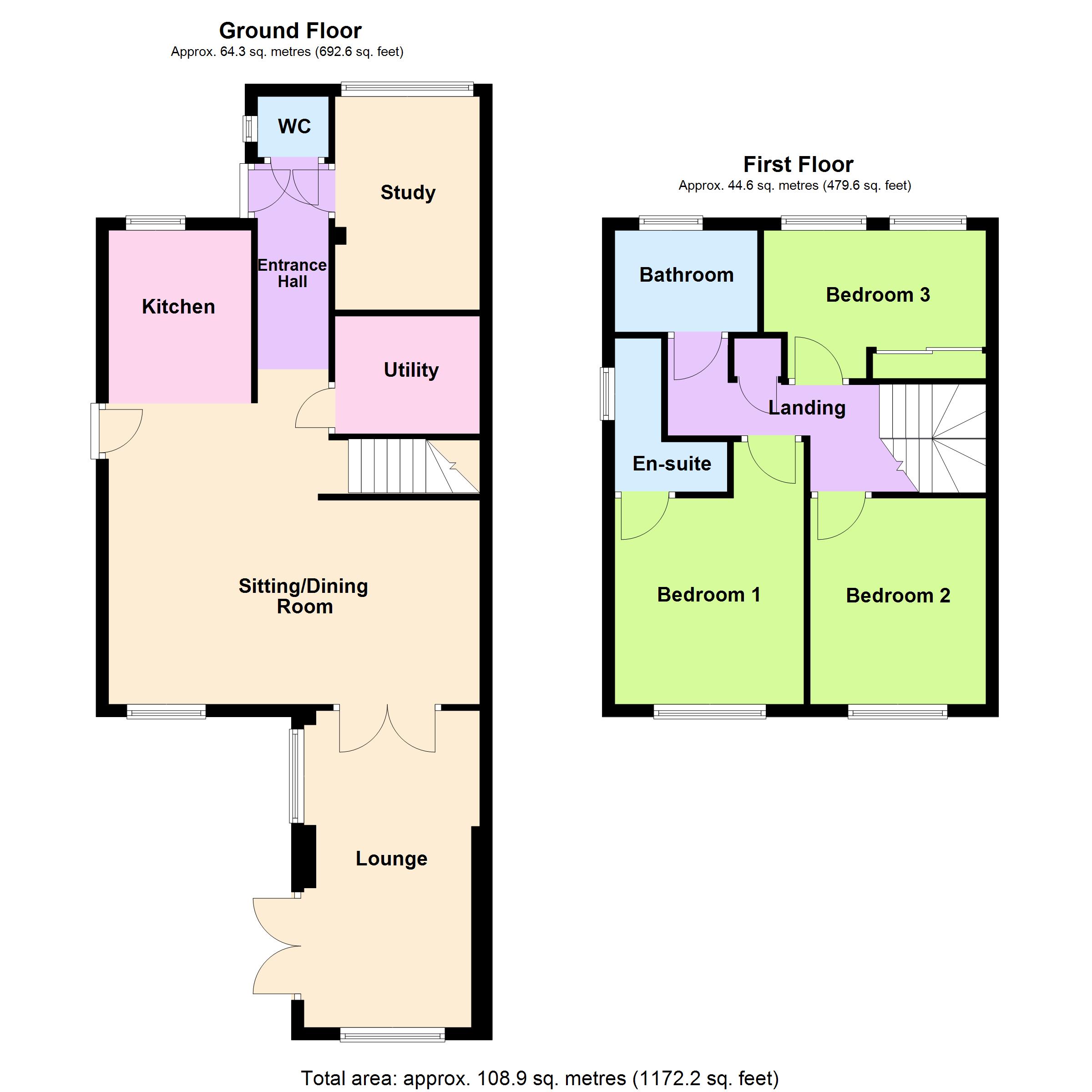 Entrance via a part glazed front door, there is access to the sitting/dining room, a door to the utility room and the study and a door to: