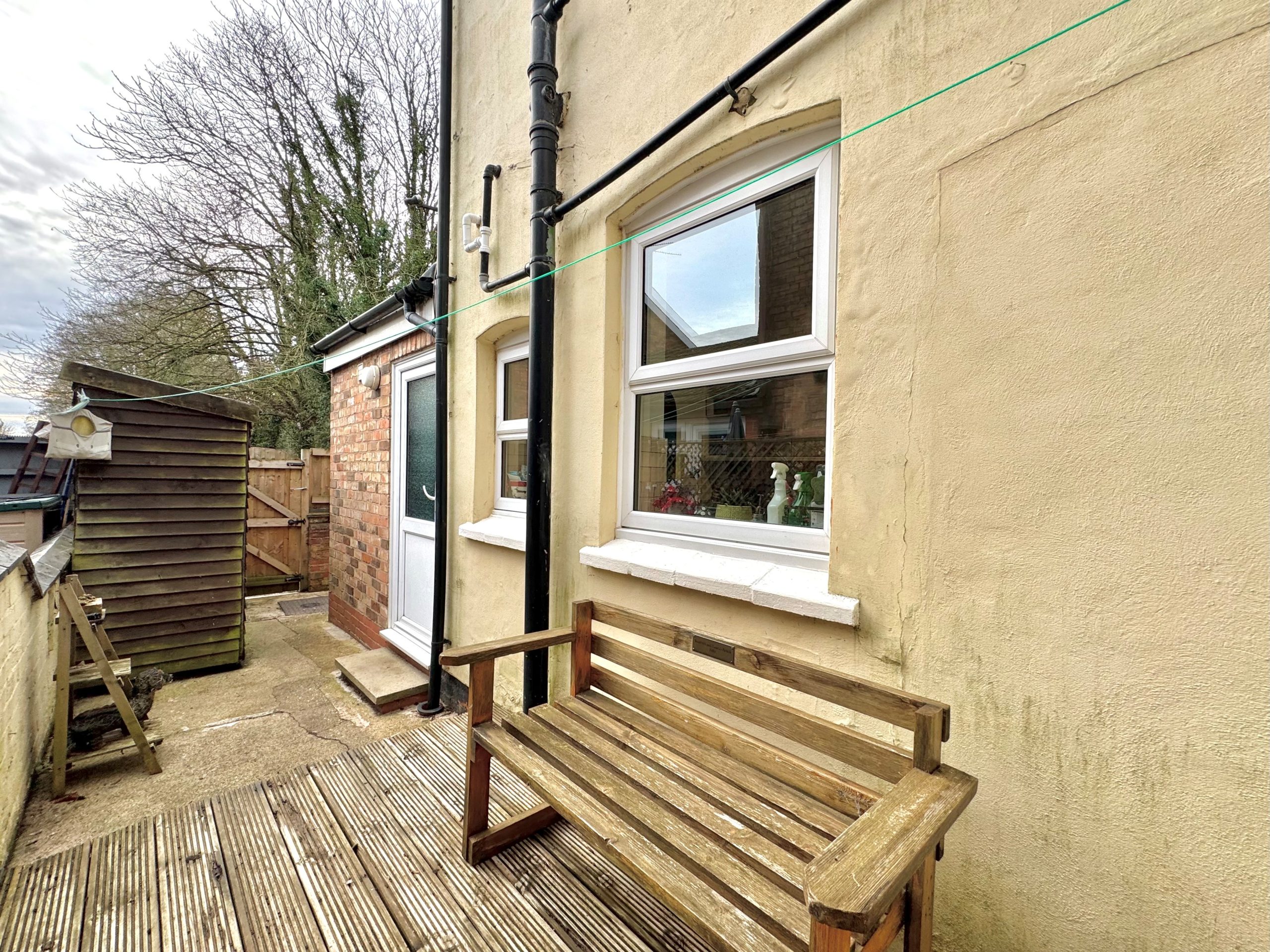 A low maintenance area which is mainly paved with decking, there is a wooden shed, gated rear access, courtesy lighting and mainly enclosed by a dwarf wall with panelled fencing.