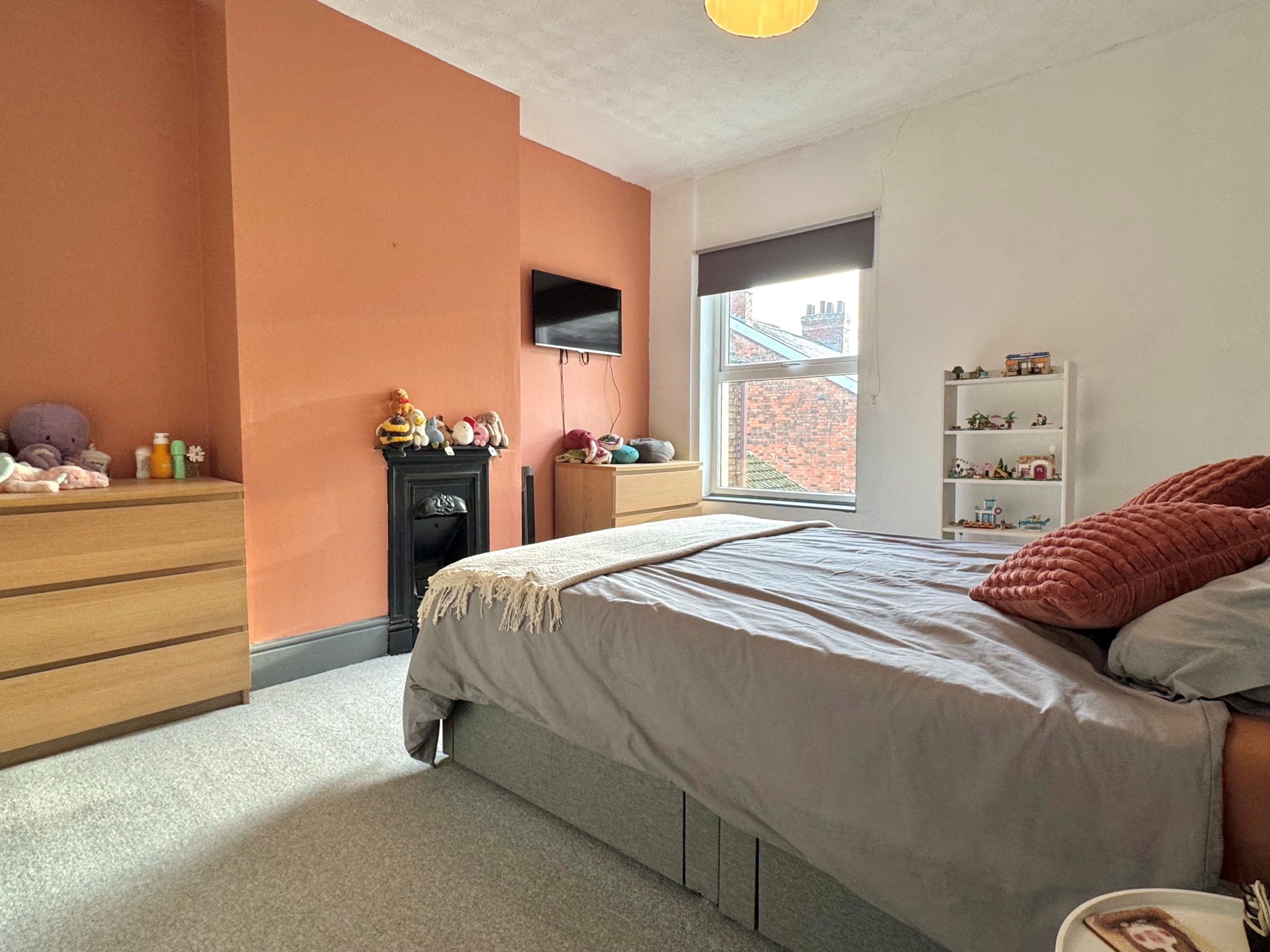 Also a double bedroom with a window to rear, cast iron feature fireplace and there is a built-in wardrobe with a loft hatch.