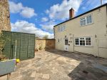 A shared block paved gated drive with courtesy lighting, access to the garage and gated access to the rear garden.